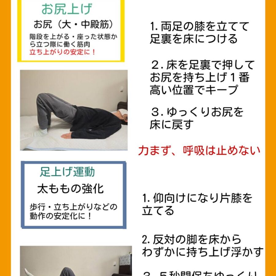 また運動面では、鍼灸マッサージ師、介護予防運動指導員として、ご本人様が望む身体状態に近づけるよう、状態に合わせた無理のない範囲で毎日行える運動やストレッチや体操などをわかりやすくPOPにしてお渡し(掲示)いたします。(ご希望者のみ)